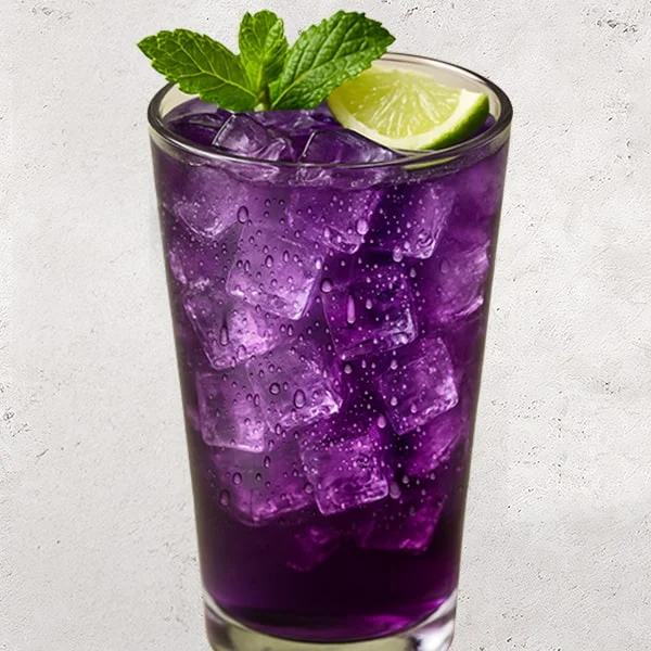 Apple elderflower syrup, butterfly pea, fresh lime, and mint, topped with soda