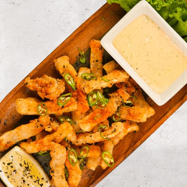 كالاماري مقرمش مقلي يُقدّم مع صلصة مايونيز حارة