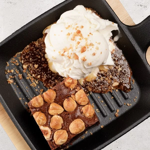 براوني بندق منزلي الصنع يُقدّم مع آيس كريم الفانيليا