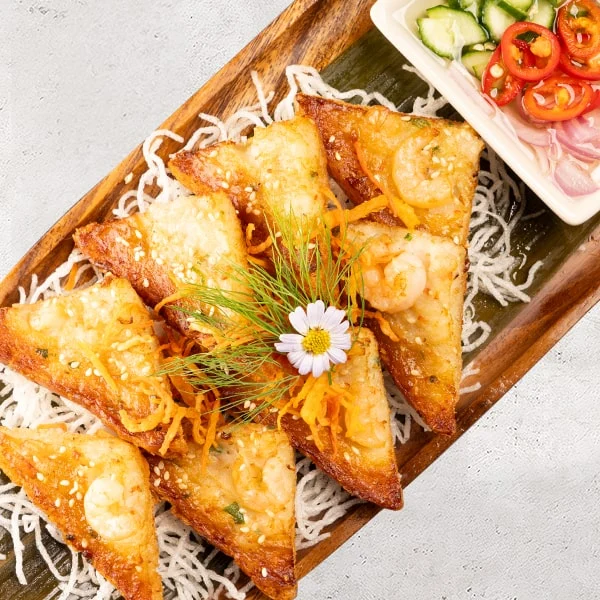 روبيان مقرمش على توست يُقدّم مع صلصة خيار حلوة