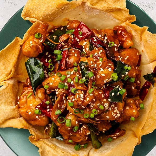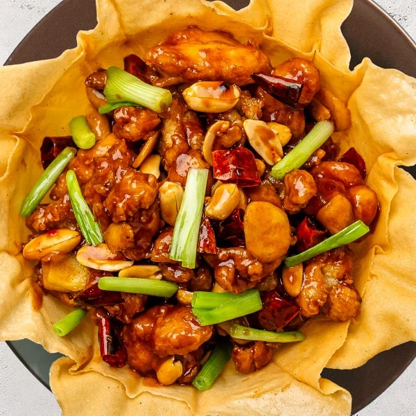Spicy stir-fried chicken with chilies, peanuts, and a bold Szechuan kick