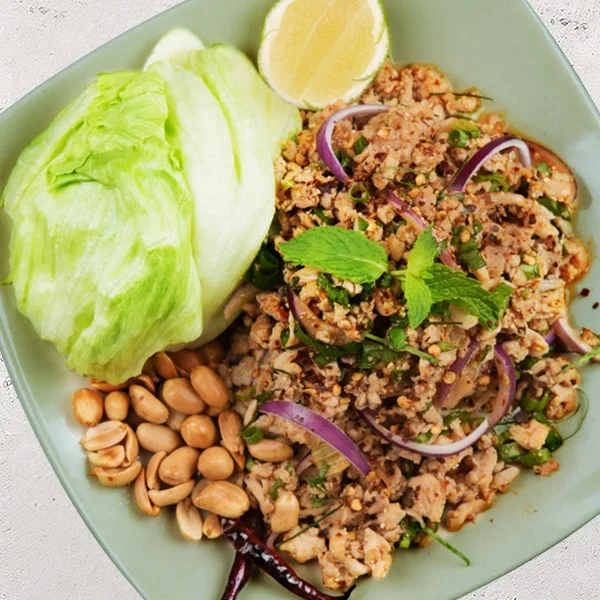 Traditional spicy minced chicken, duck, or beef salad served with iceberg lettuce