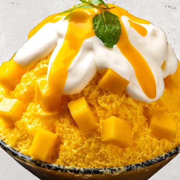 ثلج مبشور بنكهة المانجو مع مانجو طازج