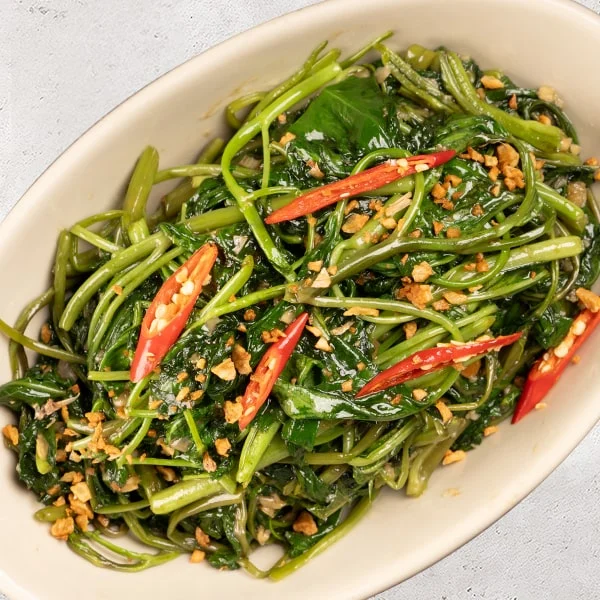 Stir-fried kangkung with chili, garlic, and soya bean paste