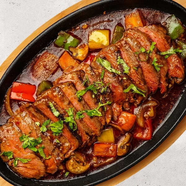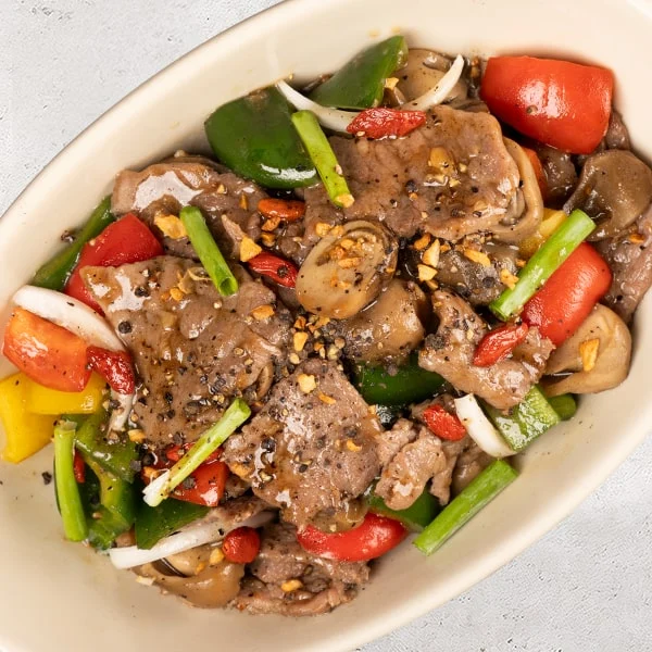 Your choice of meat or vegetables, stir-fried with crushed black pepper, garlic, and onion