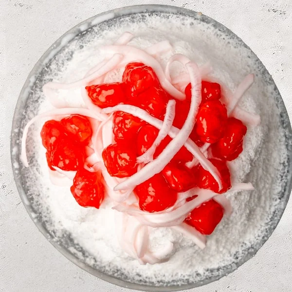قطع كستناء الماء الحمراء في ثلج كريمي بجوز الهند المحلى